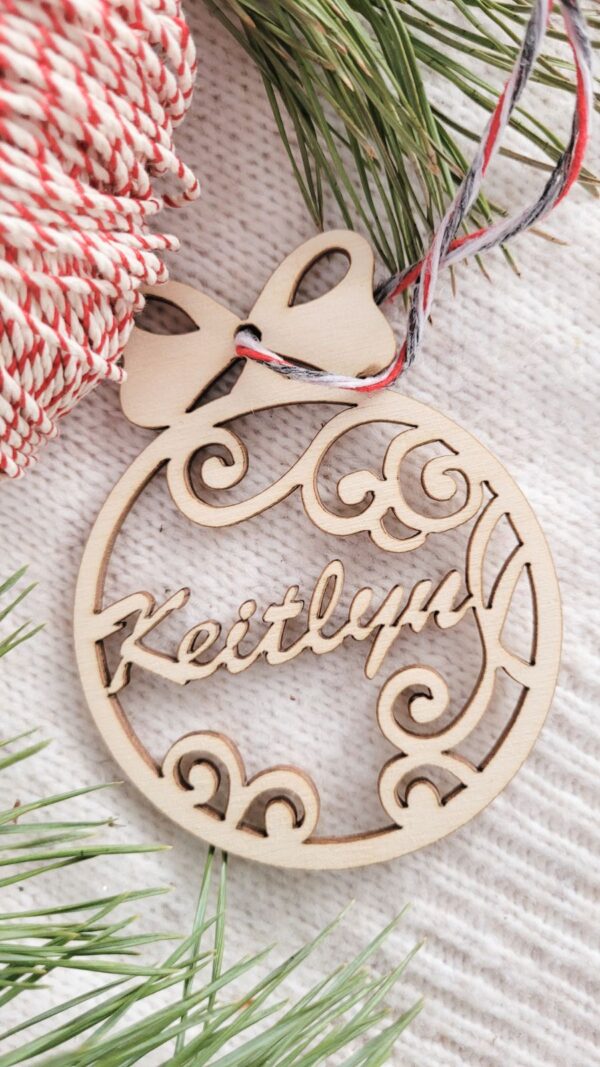 Kaunis personaalne puidust jõuluehe väljalõigatud nimega. Erinevad disainid.